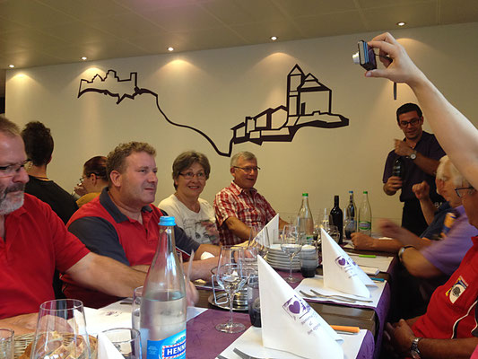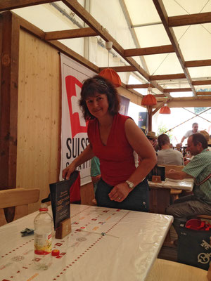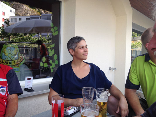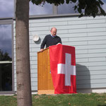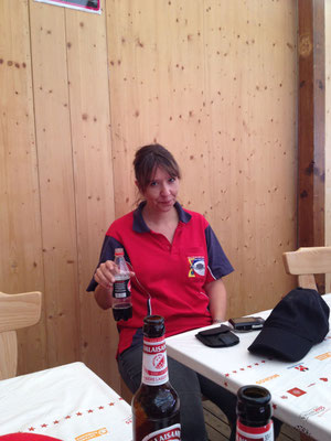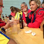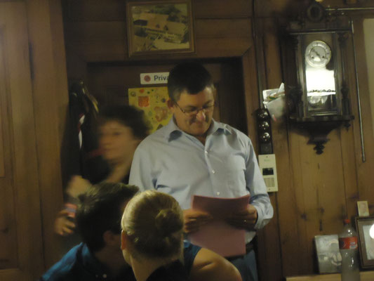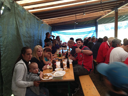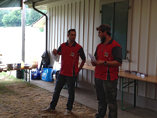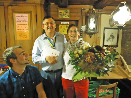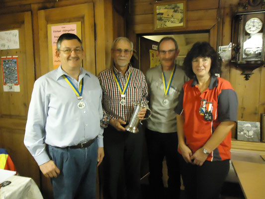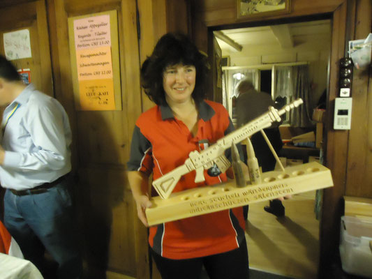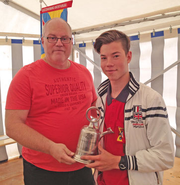 Willi Hartmann, Präsident SV Unterthurgau überreicht Mike Bolliger den Wanderpokal. Dieser wurde anschliessend zweimal gefüllt, mit alkoholfreiem Saft wohlverstanden.