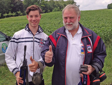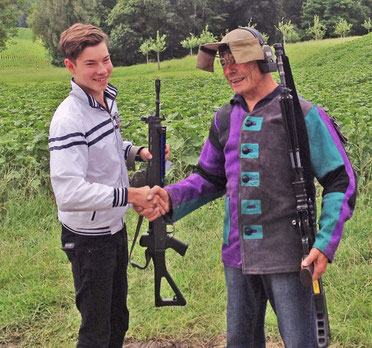 Die beiden Finalisten nach dem Schiessen. Erwin Graf gratuliert Mike Bolliger zum Sieg.